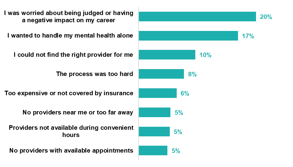 4. Worrying about being judged and wanting to handle their mental health alone are Veterans’ most common concerns or issues related to getting mental health care.