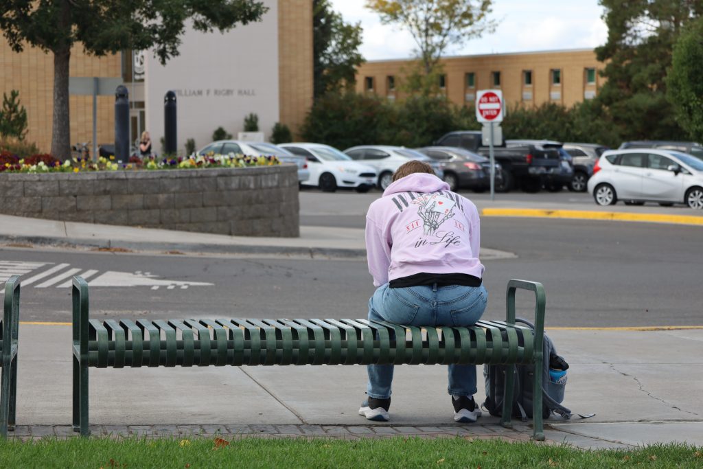 A student waiting alone. Image Credit: Katherine MacDonald