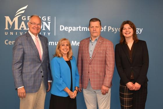 From left: Claude Moore Opportunities CEO Bill Hazel, George Mason Center for Community Mental Health director Robyn Mehlenbeck, ConnerStrong Foundation president and founder Tom Worosz, and George Mason PhD student Lucy McClellan. Photo by Jerome Boettcher/CHSS