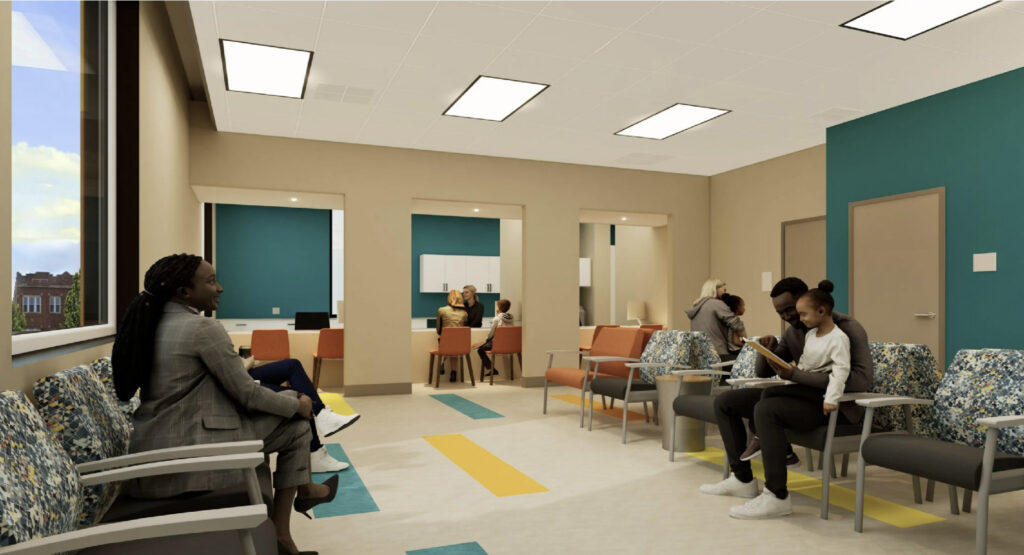 The three-story building is being developed through a partnership among Chicago Neighborhood Initiatives, Stone Community Development Corporation, Lurie Children’s Hospital, and other local organizations. It is being designed by the architecture firm Gregory Ramon Design Studio and will include a total of 25,000 square feet of space.