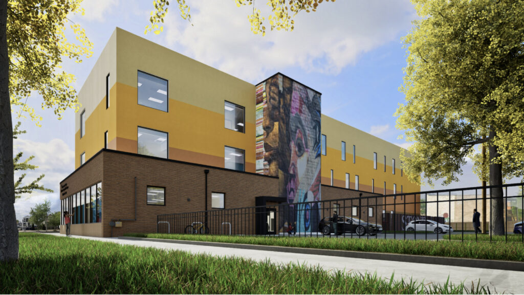 Renderings and further details have been revealed for the upcoming Austin HOPE Center wellness hub at 5036 West Chicago Avenue in Austin. Located on the corner of North Lawler Avenue, the new center is replacing a large vacant lot and is nearing its topping-out point within the neighborhood’s Soul City Corridor, according to Block Club.