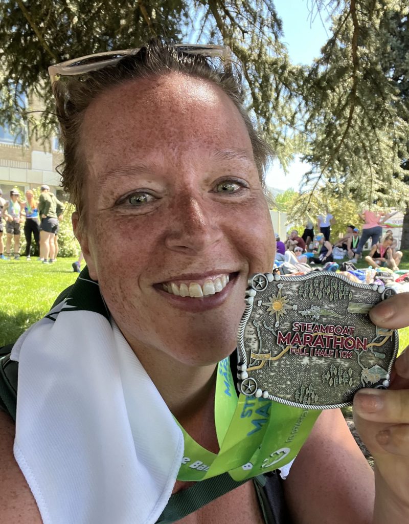Alexis Murphy poses after completing her first half marathon in Steamboat. Since that race, she has increased her training with the goal of completing an ultramarathon.Courtesy Photo/Alexis Murphy