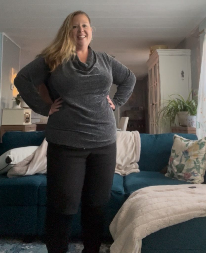 She still has moments of “body dysmorphia.” She described pulling out “goal outfits” she once saved for an imagined future, only to find them too big. She started this chapter at a size 26. Today, she is a size 6 and sometimes a 4.