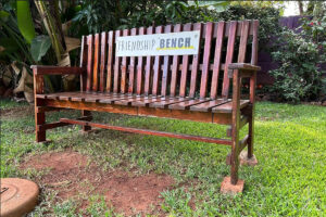 A Friendship Bench is pictured. The global initiative was started in Zimbabwe in 2006 by psychiatrist Dixon Chibanda after he lost one of his patients to suicide when she could not afford the bus fare to receive the care she needed. Courtesy of Friendship Bench