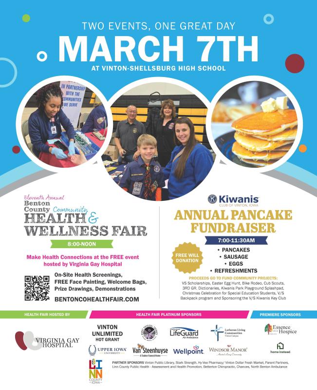 Benton County residents are invited to attend the Benton County Health & Wellness Fair on Friday, March 7th, at Vinton-Shellsburg High School, held in conjunction the annual Kiwanis Club of Vinton with Pancake Breakfast.