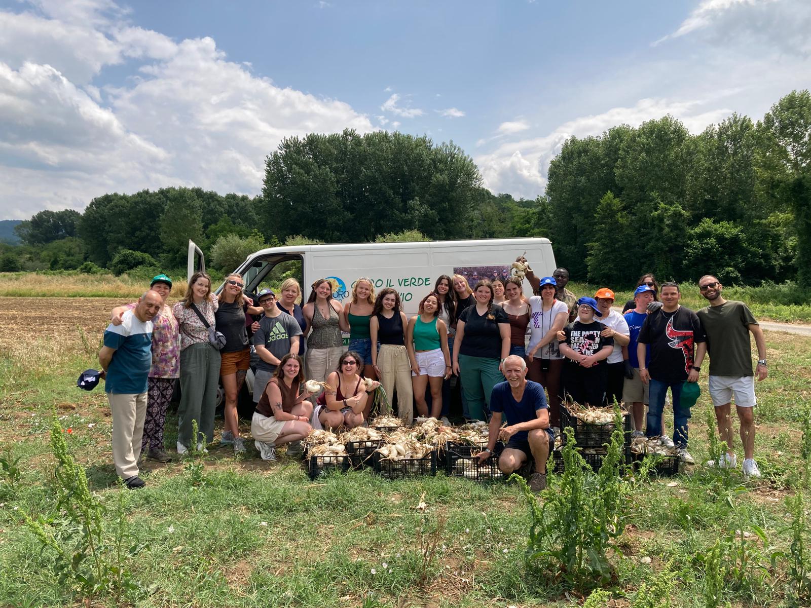 LAI Cooperative in Italy, a program for adults living with developmental disabilities, harvesting onions they sell to help fund their programs.