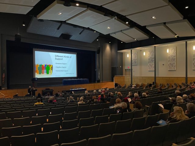 Attendees, mostly senior citizens and parents, listened to speakers, shared experiences and feelings, and met with sponsors of the event.
