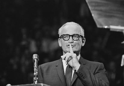 Senator and presidential nominee Barry Goldwater at an election rally in Madison Square Garden, New York City in October 1964. William Lovelace (Getty Images)