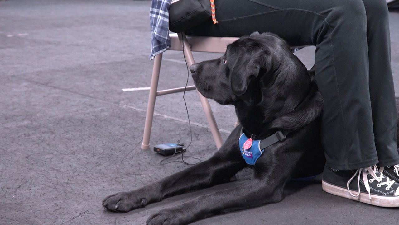 “We’ve got the self-harm interruption,” she explained. “We train the dogs to wake some of the kids. They can guide to exits. We do deep pressure therapy where the dog lays across their lap or hugs them.”