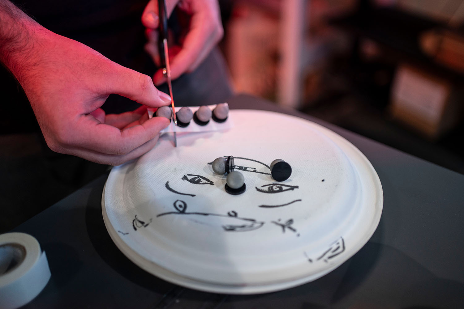 A researcher prepares the reflective markers that will be attached to the motion capture suit.