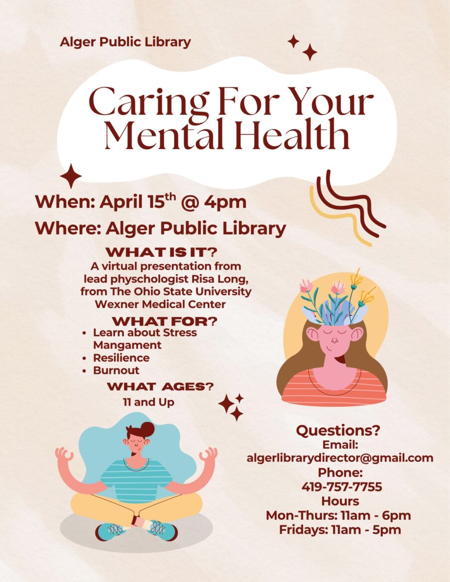 The Alger Public Library will host a Caring for Your Mental Health virtual program on April 15.