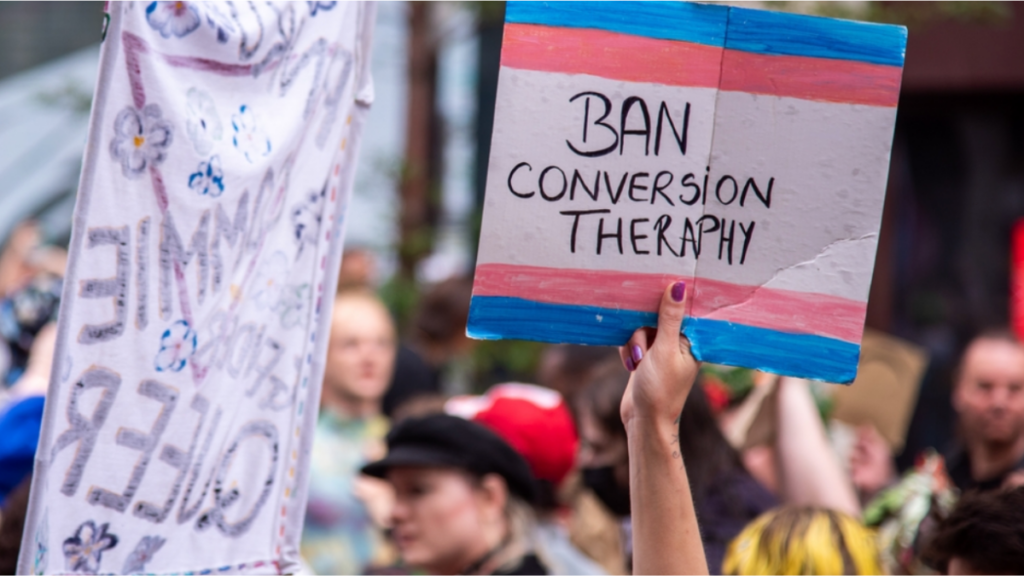 Conversion therapy attempts to change a person’s sexual orientation or gender identity, sometimes through severe methods that rise to abuse, including electric shock, masturbation reconditioning, starvation, chemically induced nausea, and hypnosis, among others.