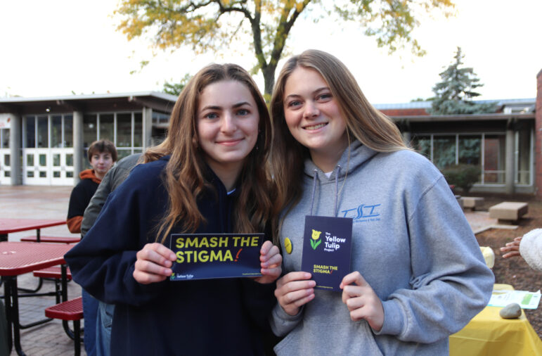 Bridget Carriello (GHS class of 2024) Emily Sedgwick (Sacred Heart Greenwich class of 2024) brought Yellow Tulip Project to Greenwich. Oct 8, 2022 Photo: Leslie Yager