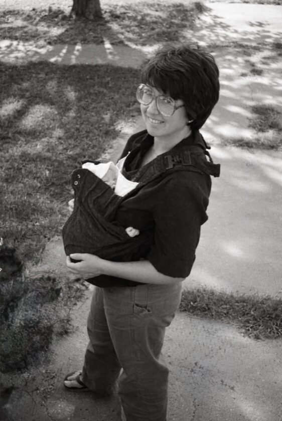 Sally Pokorny, pictured some 40 years ago, with her infant son.