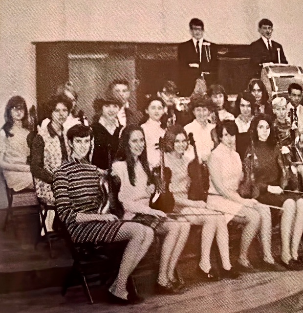 Violinist Sally (Davis) Pokorny, front row, fourth from left, is pictured with the Independence High School Orchestra. Also pictured in the front row, from left, are classmates Kathy Webb, Sheila Bair, Debbie Pasternak and, to the right of Pokorny, Jenni Burkhead.