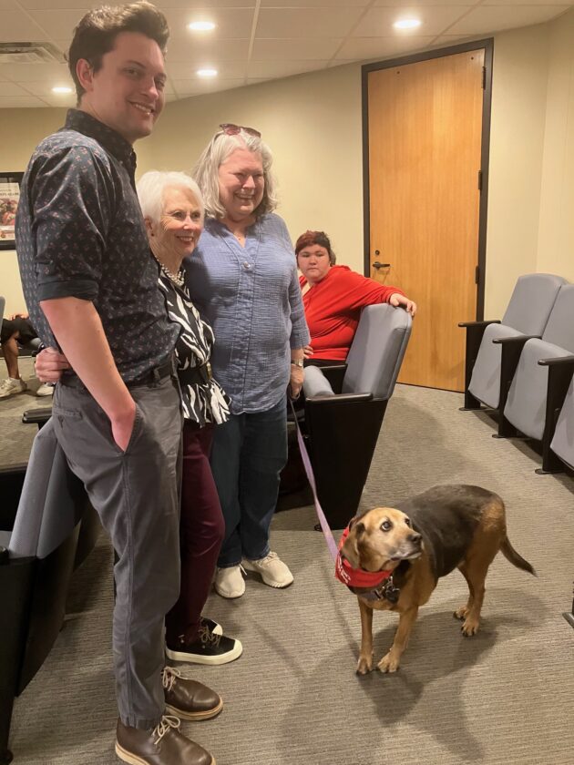 Blair Bracciano, a member of the Behavioral Health Court, left, is pictured with Judge Sally Pokorny, center, Cathy Hilliard and Harley the dog from Loving Paws.
