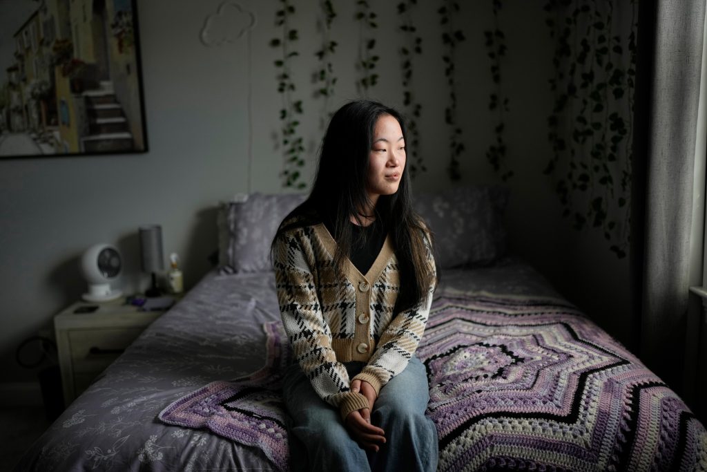 Kate poses for a portrait in her apartment in Kentucky, Wednesday, Dec. 10, 2025. (AP Photo/Michael Swensen)