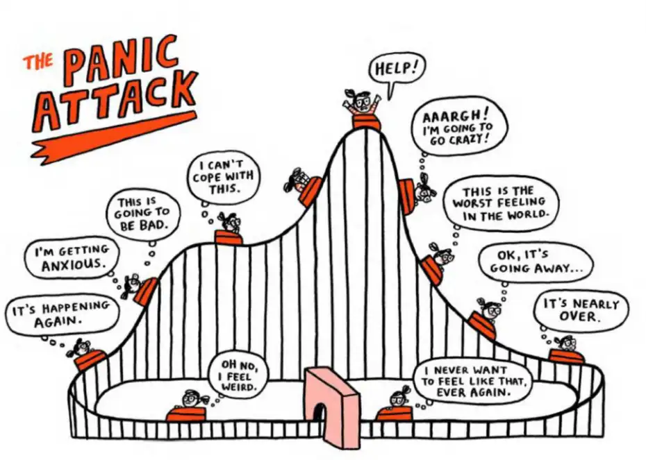 As the book progresses, it rotates among three storylines/formats: a recent time when Gemma checked herself into a Partial Hospitalization Program; her entire past, when she suffered from panic attacks, crippling anxiety, agoraphobia, depression, and alcohol abuse; and humorous comics ironically portraying her struggles with her symptoms as thrilling and frightening amusement park attractions. And so: Anxietyland.
